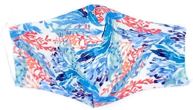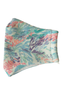 Dit mondkapje oftewel gezichtsmasker is gemaakt van katoen en glansstof in een model dat mooi aansluit op het gezicht, in fijne fantasie bloemen-print. Het is wasbaar op 60 graden en dus duurzaam te gebruiken. Het betreft hier 2 lagen stof met ruimte voor filter en met verstelbare oorlussen.