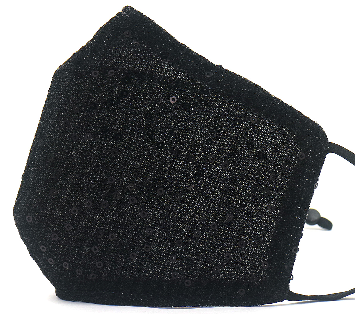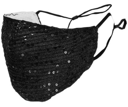 De mondkapjes met glitters hebben wij al even in onze webshop maar deze is helemaal over de top! De stof heeft zelf al glitters maar daar zitten dan ook nog glitterende zwarte paillettes (lovertjes) op.