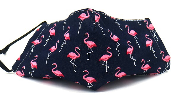 Dit mondkapje oftewel gezichtsmasker is gemaakt van katoen in een model dat mooi aansluit op het gezicht, in trendy flamingo-print. Het is wasbaar op 60 graden en dus duurzaam te gebruiken. Het betreft hier 2 lagen katoen met ruimte voor filter. Met verstelbare oor-elastieken.