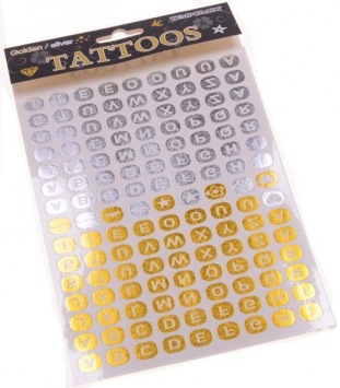 Tijdelijke sieraden Tattoo, blijft 3 tot 7 dagen zitten. Knip uit wat je leuk vind en plak het dmv. een spons en wat water op de huid, en zie... een heel leuk effect, en omdat het goud-of zilverkleurig is weer eens iets anders!