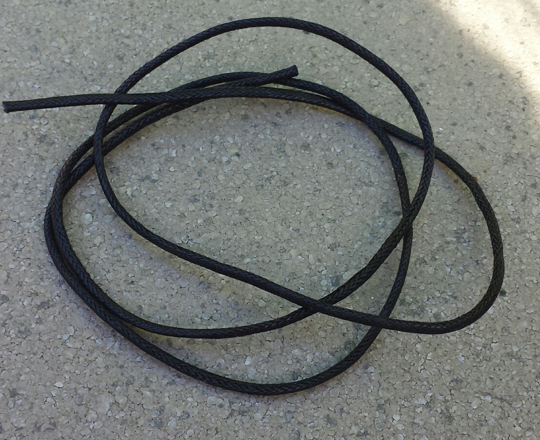 Dit zwarte koord is precies op maat voor de naamkettingen, het is 2 mm dik en ong. 75 cm lang. Deze lengte is nodig voor de schuifknoopjes.
