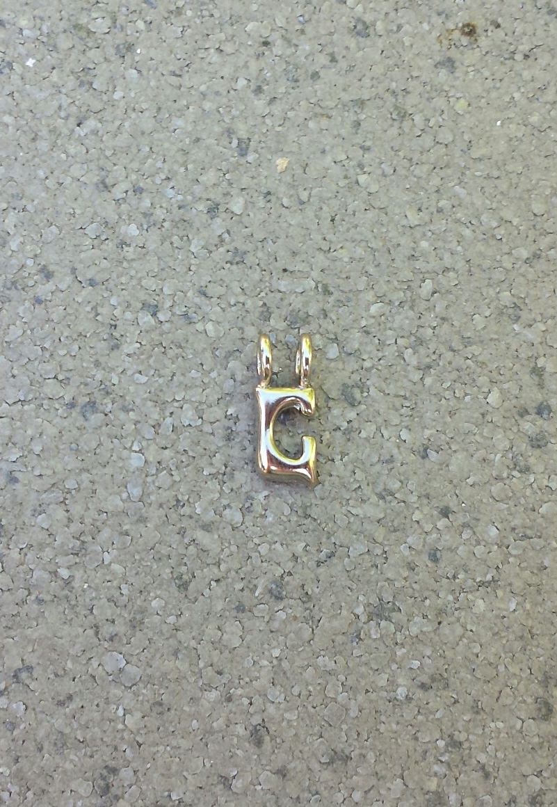 Hier gaat het om de letter G en als je een gehele ketting bestelt met zwart koord en veertjes-stoppers, geef dan even een seintje via het opmerkingenformulier (en de goed gespelde naam...) dan zetten wij hem voor je in elkaar met schuifknoopjes zoals het hoort!