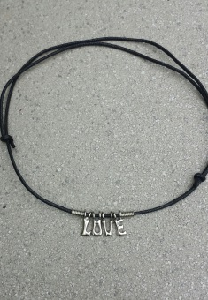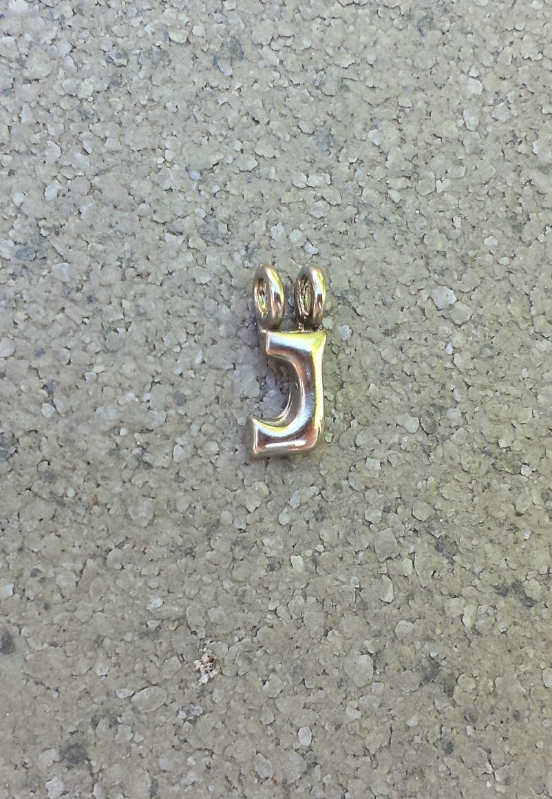Hier gaat het om de letter J en als je een gehele ketting bestelt met zwart koord en veertjes-stoppers, geef dan even een seintje via het opmerkingenformulier (en de goed gespelde naam...) dan zetten wij hem voor je in elkaar met schuifknoopjes zoals het hoort!