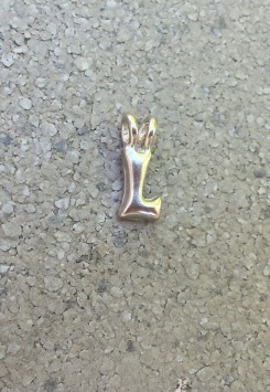 Hier gaat het om de letter L en als je een gehele ketting bestelt met zwart koord en veertjes-stoppers, geef dan even een seintje via het opmerkingenformulier (en de goed gespelde naam...) dan zetten wij hem voor je in elkaar met schuifknoopjes zoals het hoort!