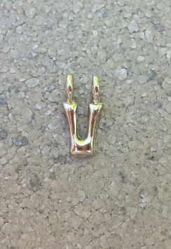 Hier gaat het om de letter V en als je een gehele ketting bestelt met zwart koord en veertjes-stoppers, geef dan even een seintje via het opmerkingenformulier (en de goed gespelde naam...) dan zetten wij hem voor je in elkaar met schuifknoopjes zoals het hoort!