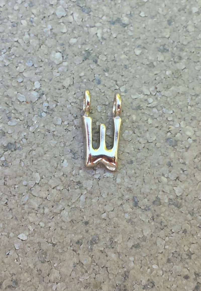 Hier gaat het om de letter W en als je een gehele ketting bestelt met zwart koord en veertjes-stoppers, geef dan even een seintje via het opmerkingenformulier (en de goed gespelde naam...) dan zetten wij hem voor je in elkaar met schuifknoopjes zoals het hoort!