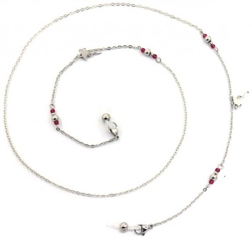 Aan de uiteindes van de ketting zitten de lusjes van siliconen om je de pootjes van je bril (dubbel) doorheen te halen. Je kunt deze brillen-ketting ook gewoon als ketting dragen, dan haal je de lusjes eraf en haak de slotjes aan elkaar!