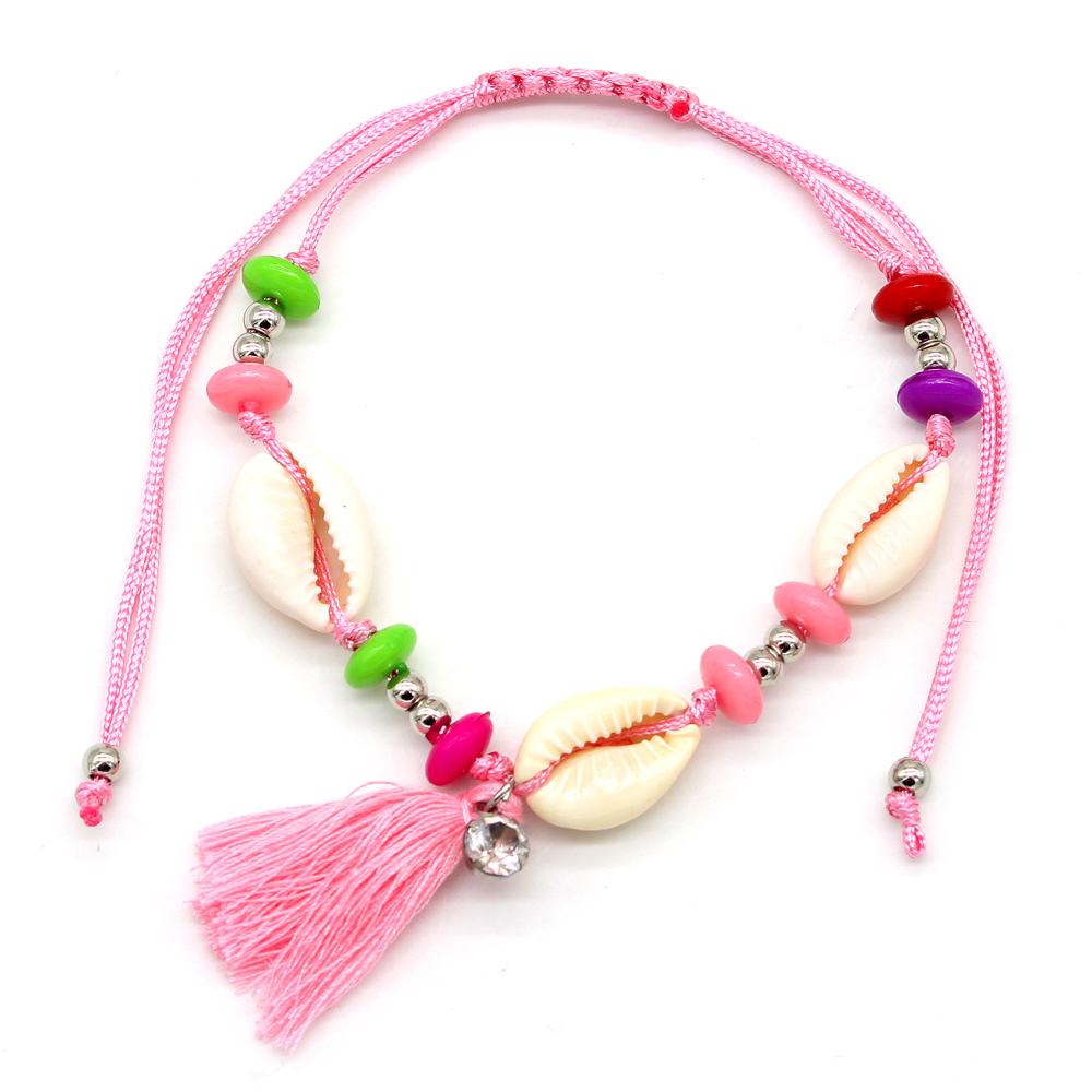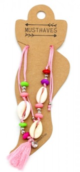 Enkelbandje Shells & tassel pink-multi