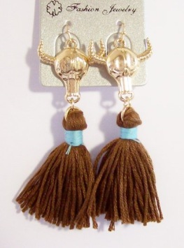 Leuke Ibiza style oorbellen met de trendy Buffalo skull in het goud met bruine kwastjes!