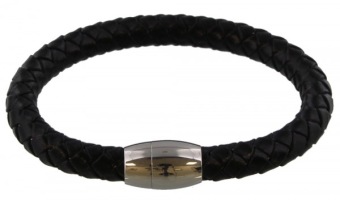 Deze stevige armband is van rond gevlochten donkerbruin leer met stainless steel magneetsluiting. De sluiting is handig om zelf om te doen en ziet er mooi uit.