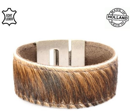 Deze heren armband is van echte Cow-skin ofwel koehuid gemaakt, met haartjes dus en made in Holland!