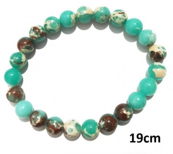 Deze armband is gemaakt van Serpentine Stone natuursteen kralen. De armband is elastisch en geschikt tot 19 cm. polsmaat.