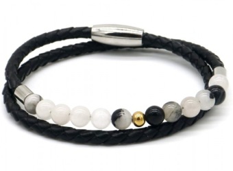 Deze armband is van rond gevlochten 8 mm zwart leer met stainless steel magneetsluiting. De sluiting is handig om zelf om te doen en ziet er mooi uit.