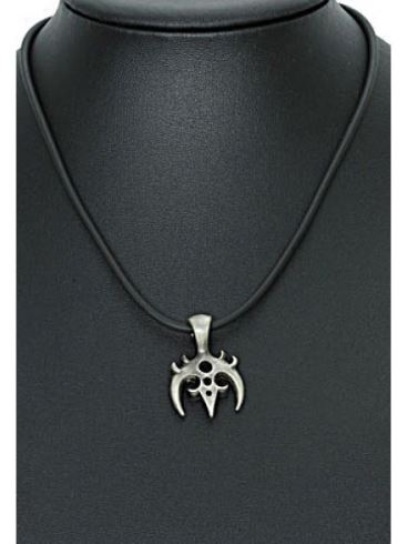 Korte heren ketting van zwart rubber met als hanger een gestileerde Buffalo hanger van oud-zilverkleurig metaal.