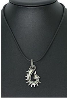 Lengte  verstelbaar van 45 -53 cm, dikte rubber koord 3 mm, grootte hanger 30 x 20 mm.