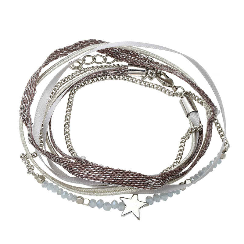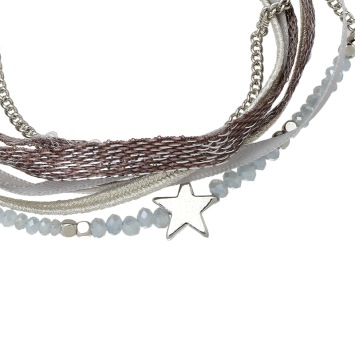Armband wrap Beads & Star grijs-zilver