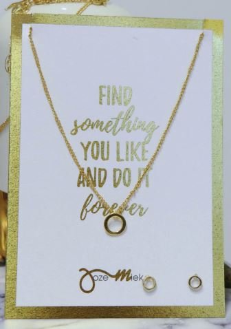 Een leuke kaart met verguld ofwel gold-plated kettinkje met (karma) rondje er aan, deze moet je hebben! Draag hem minimalistisch solo of combineer met andere kettinkjes. De bijpassende ronde oorbellen ofwel studs krijg je er tijdelijk gratis bij!