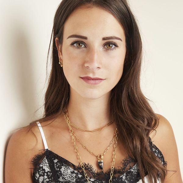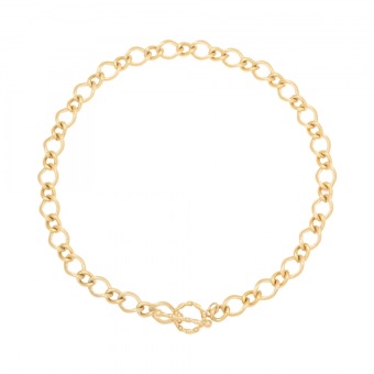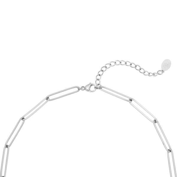 Deze korte ketting (chokerlengte) bestaat uit langwerpige grote schakels van stainless steel, helemaal hip de wat grotere schakels momenteel! Leuk om ook te combineren met andere langere kettingen.