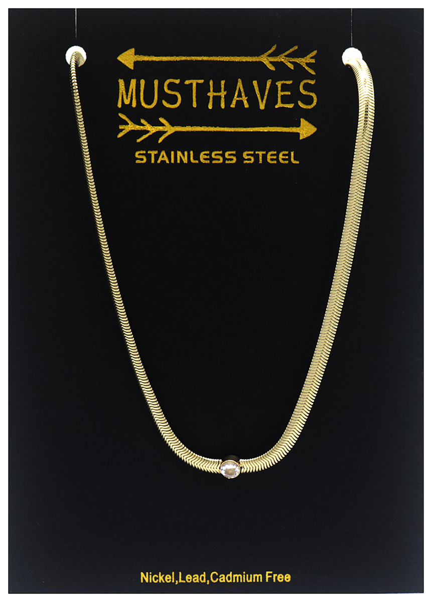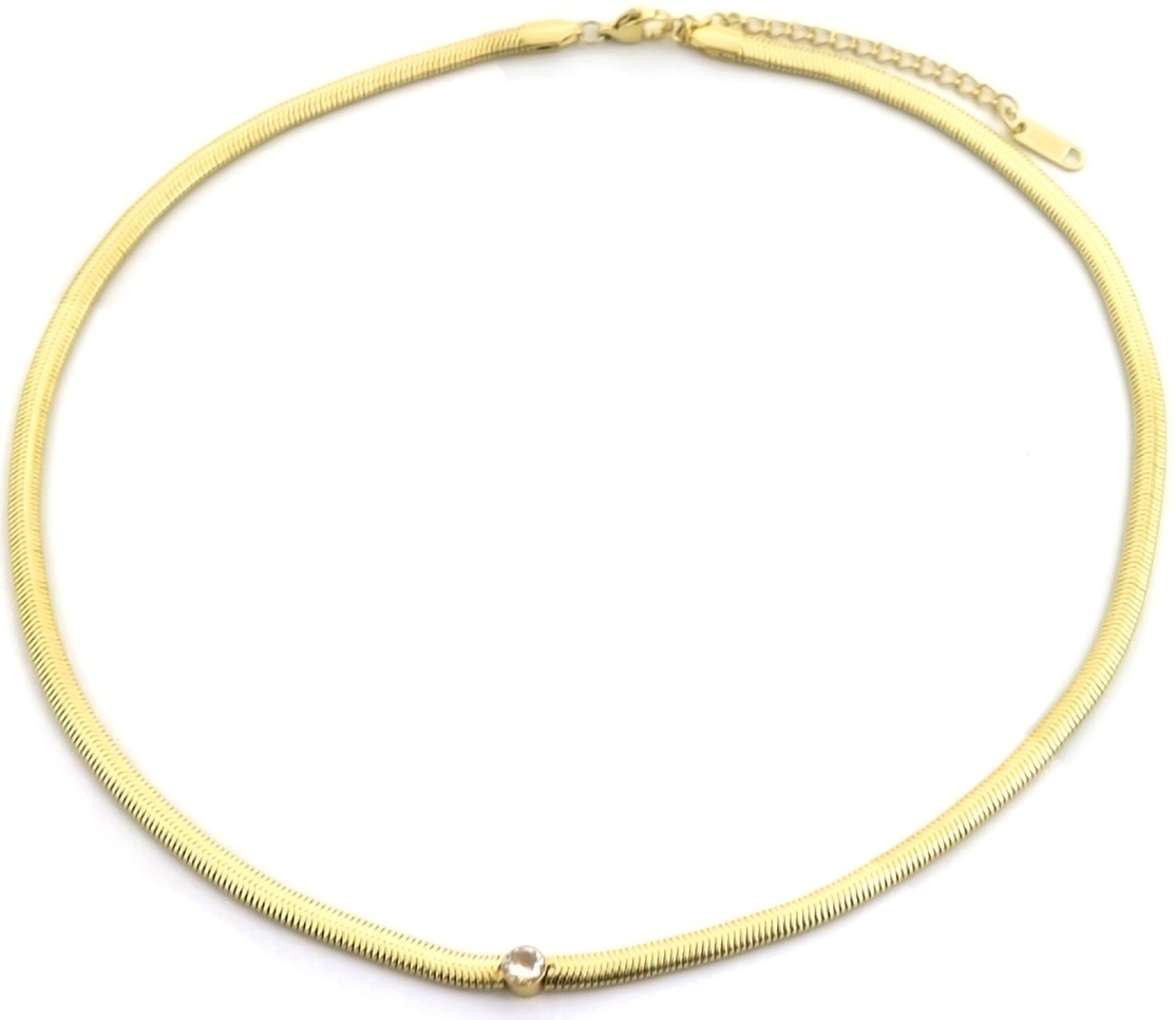 Korte platte snake ( 4 mm) ketting met in het midden een Zirconia steentje, wat mooi schittert als een diamantje! De ketting is van stainless steel zoadet hij lang mooi blijft