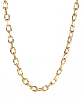Deze ketting bestaat uit 2 laagjes onder elkaar, waarvan de kortste platte snake schakels (2 mm) heeft en de langste fijne (1,5 mm) schakels met hartjes.