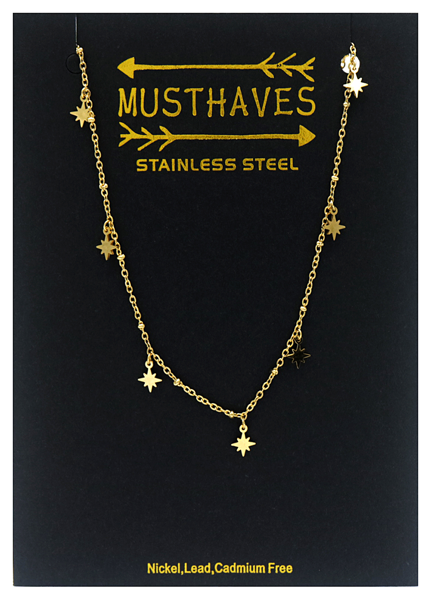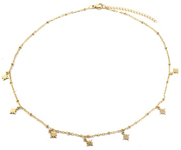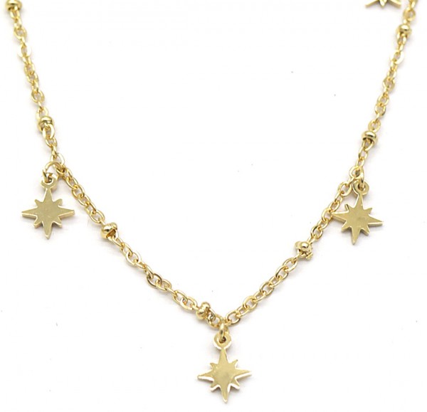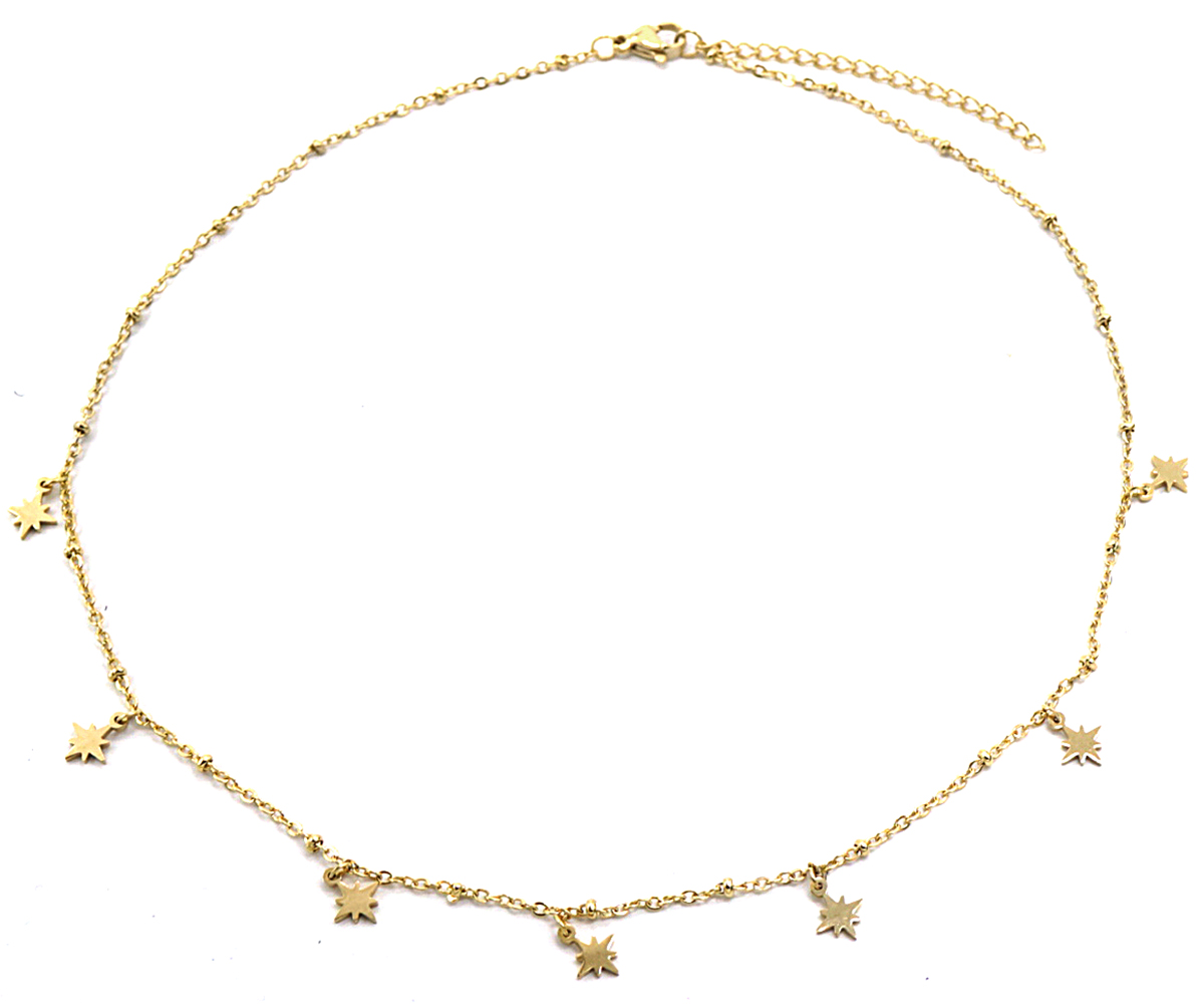 Deze korte fijne (1.5 mm) ketting heeft 7 noorder sterren over de ketting verdeeld. De ketting is van stainless steel zodat hij lang mooi blijft!