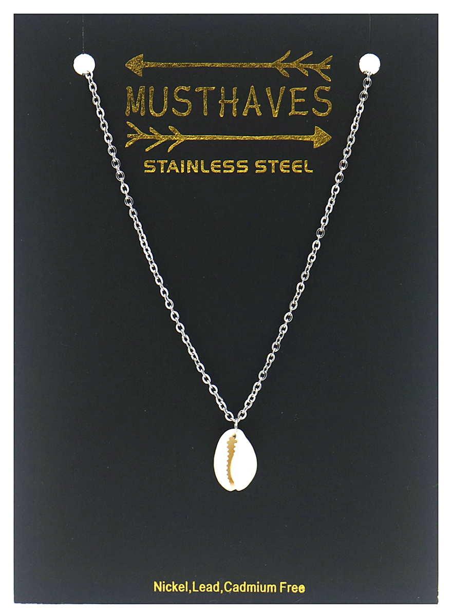 Deze fijne (2 mm) ketting heeft als hanger een echt schelpje maar de ketting zelf is van stainless steel, blijft dus mooi!