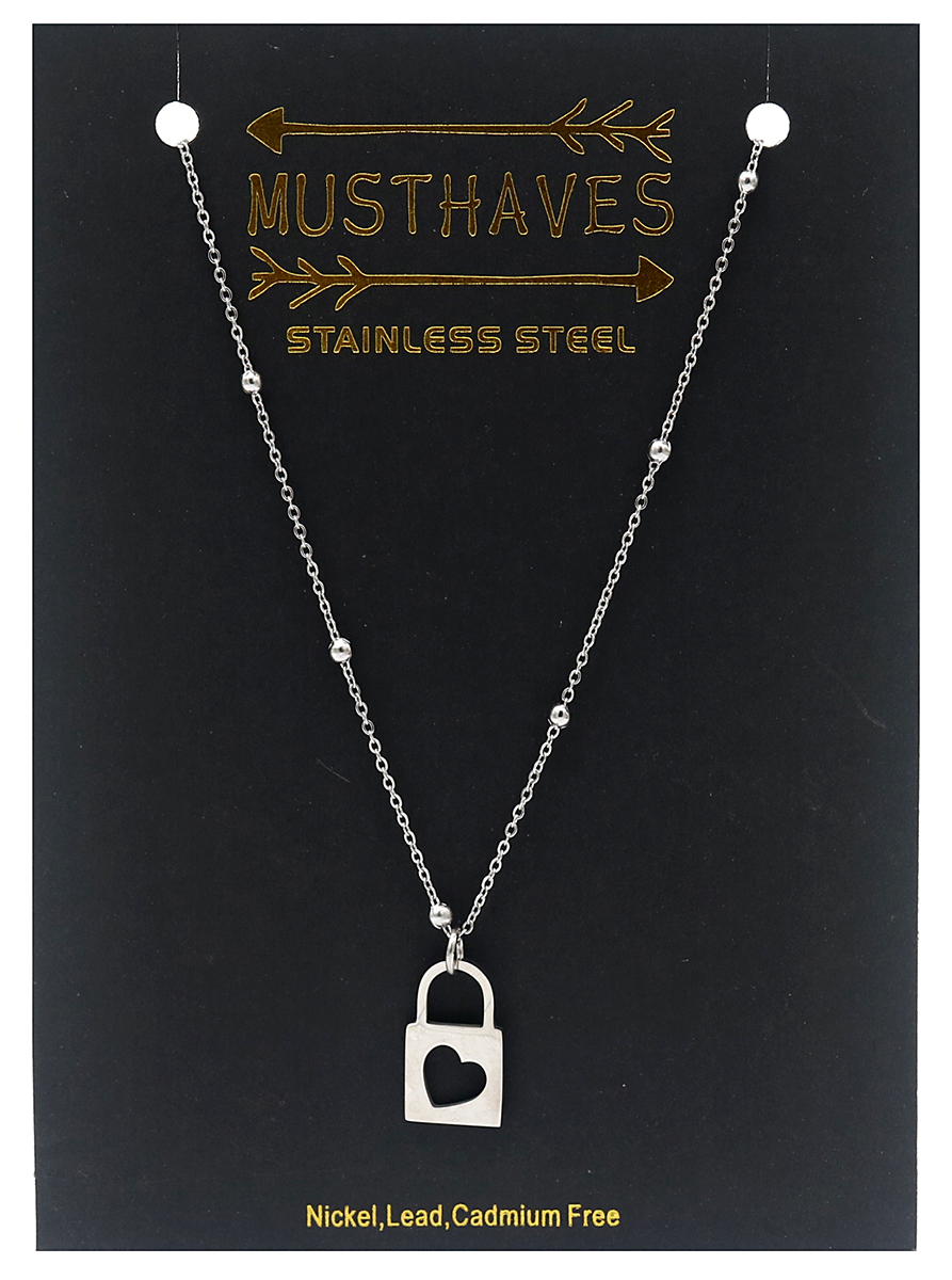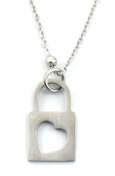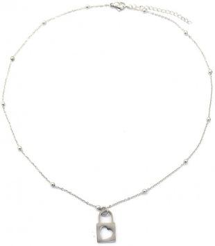 Deze fijne (1 mm) ketting met kleine bolletjes heeft als hanger een slot met open hart van stainless steel, blijft dus mooi!