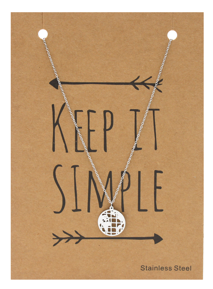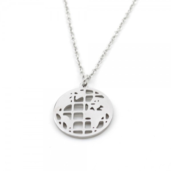 Deze korte fijne (1 mm) ketting heeft als hangertje een opengewerkte wereldbol oftewel Globe, van stainless steel zodat hij mooi blijft. Er zijn hier ook oorbellen en een armband van!