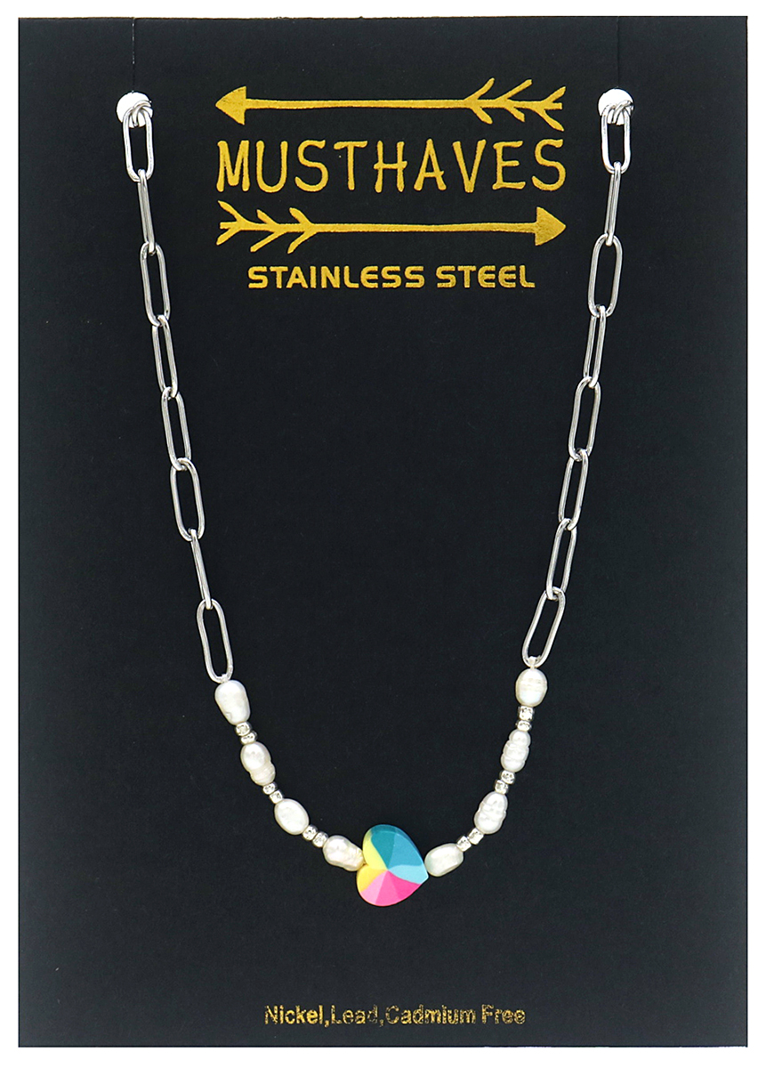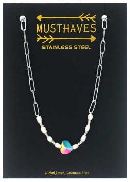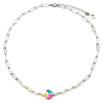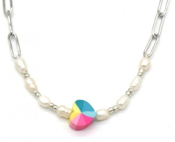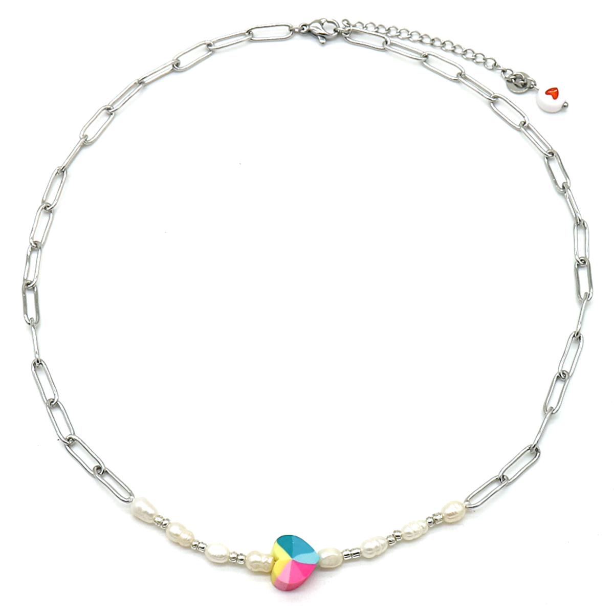 Ketting Rainbow Hart & Parels stainless steel zilver-multi