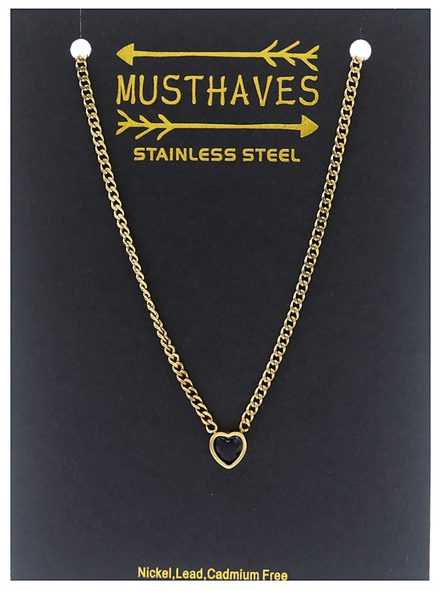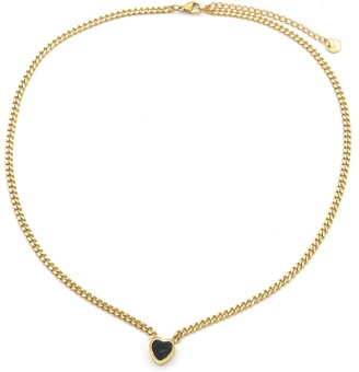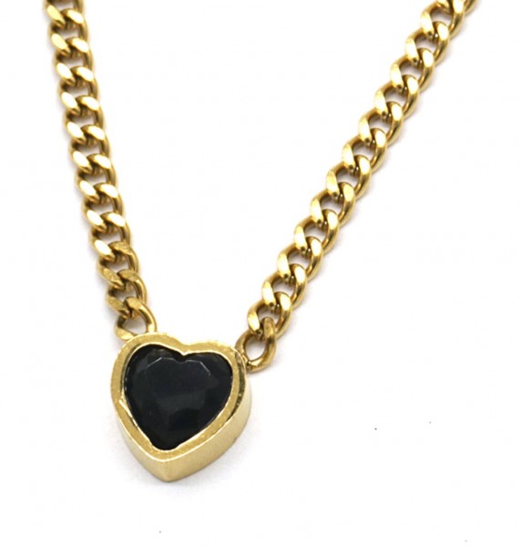 Deze ketting heeft schakels van 3 mm en een hartje met zwarte kristal in het midden, de ketting zelf is van stainless steel, blijft dus mooi!