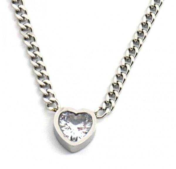 Deze ketting heeft schakels van 3 mm en een hart met kristal in het midden, de ketting zelf is van stainless steel, blijft dus mooi!