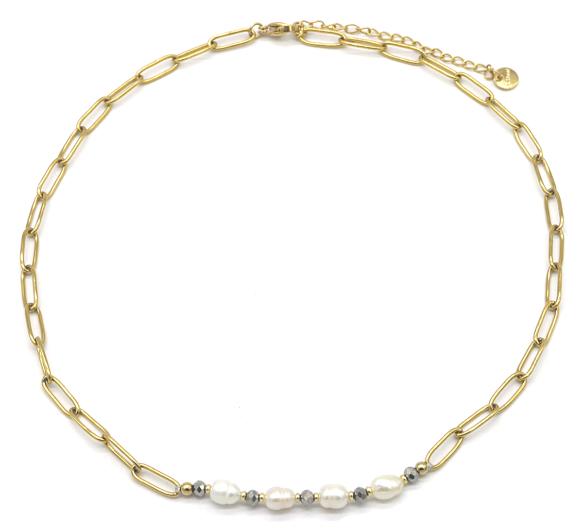 Materiaal; Stainless steel (RVS), zoetwaterparels.