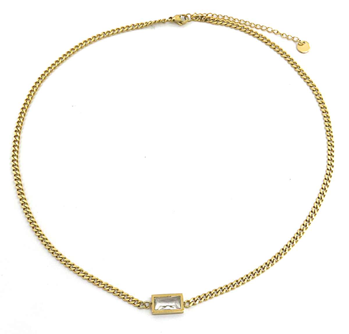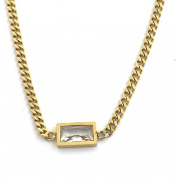 Deze ketting heeft schakels van 3 mm met een rechthoek met kristal in het midden, de ketting zelf is van stainless steel, blijft dus mooi!