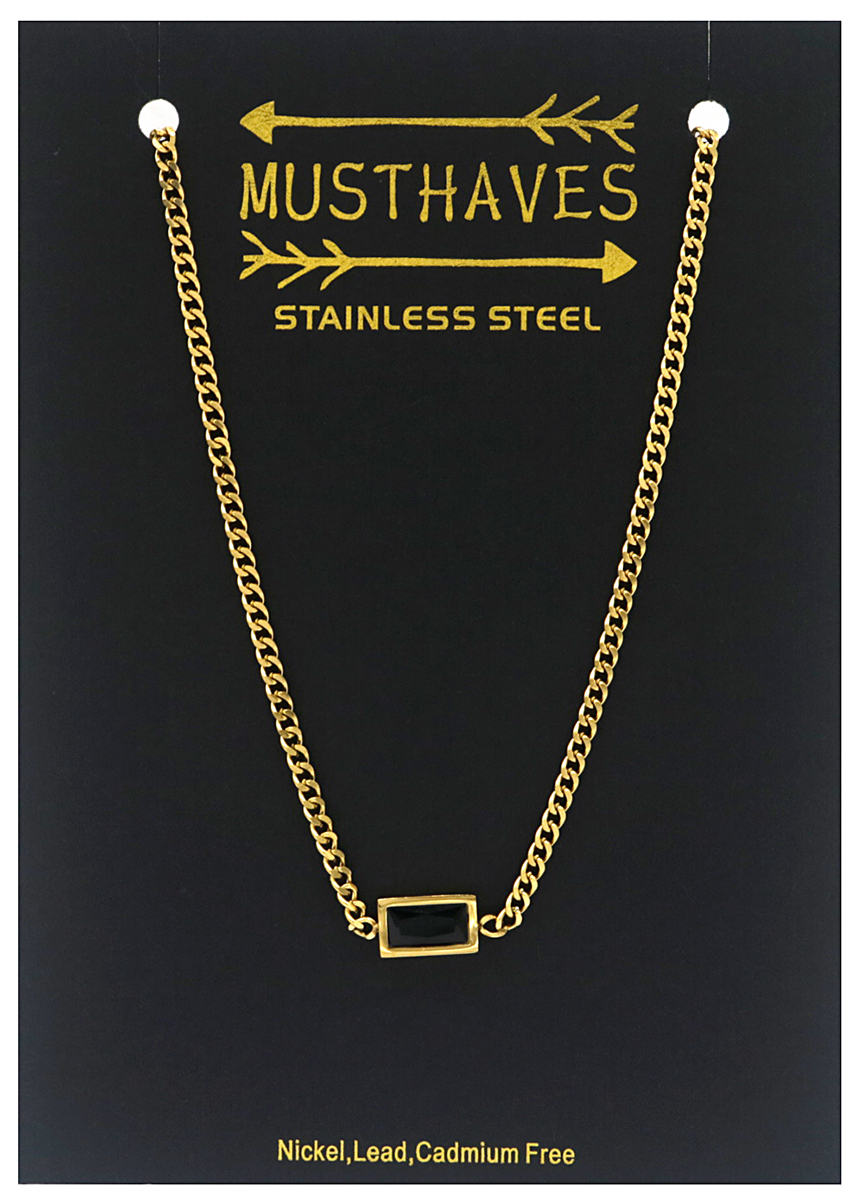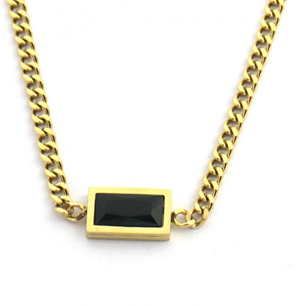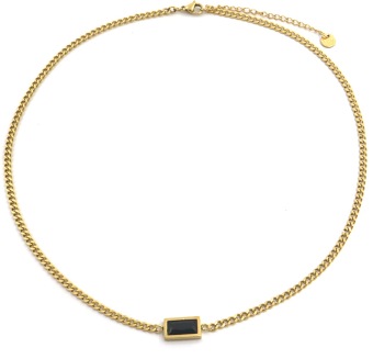 Deze ketting heeft schakels van 3 mm met een rechthoek met zwart kristal in het midden, de ketting zelf is van stainless steel, blijft dus mooi!