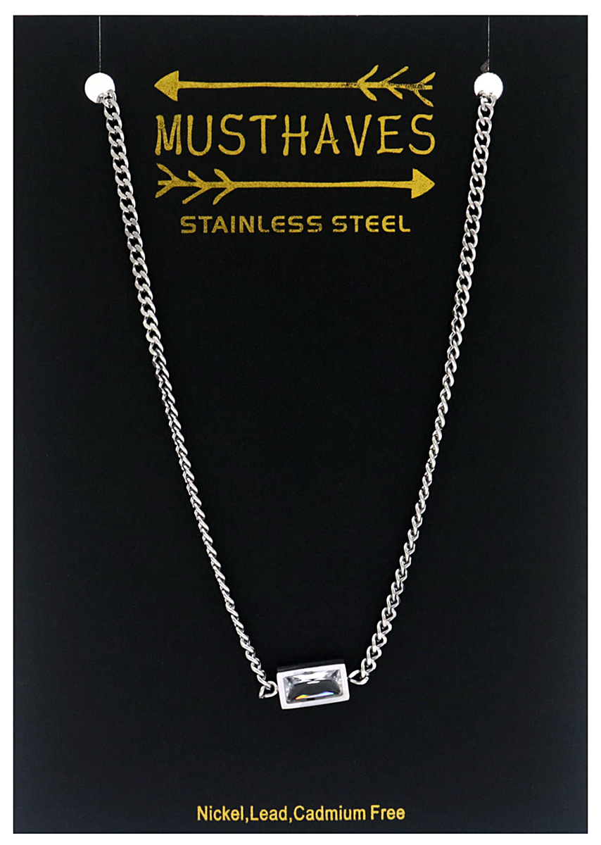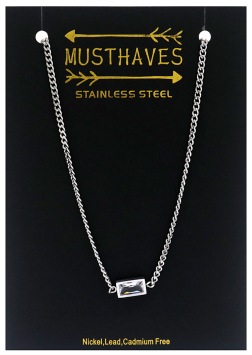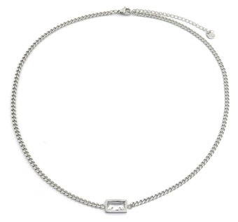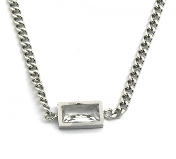 Deze ketting heeft schakels van 3 mm met een rechthoek met kristal in het midden, de ketting zelf is van stainless steel, blijft dus mooi!