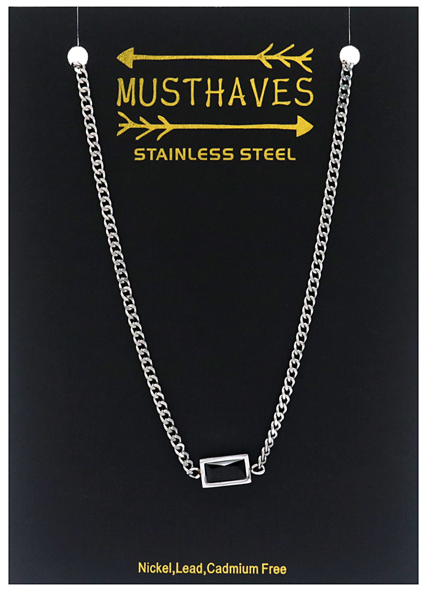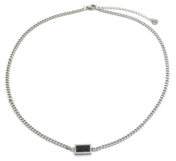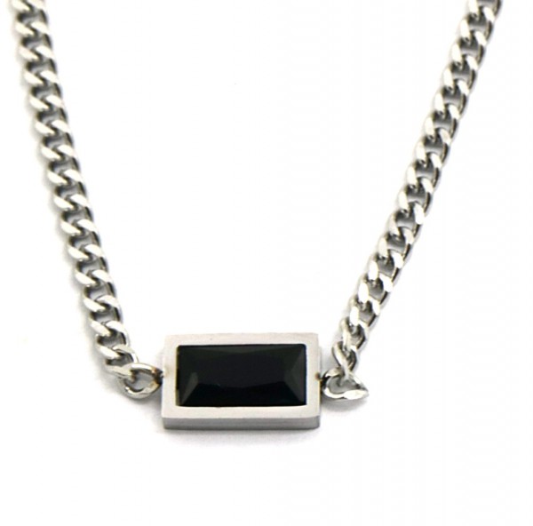 Deze ketting heeft schakels van 3 mm met een rechthoek met zwart kristal in het midden, de ketting zelf is van stainless steel, blijft dus mooi!