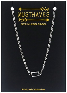 Ketting schakels & rechthoek stainless steel zilver-zwart