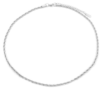 Deze korte ketting heeft gedraaide schakels en is ong 3 mm dik. De gedraaide ketting is van stainless steel (RVS) zodat hij lang mooi blijft. De lengte is verstelbaar van 41-46 cm. Mooi te combineren met andere kettingen uit onze collectie!