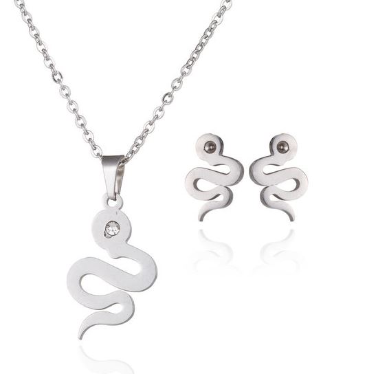 Deze ketting heeft als hangertje een Slang van stainless steel, incl. oorbellen!