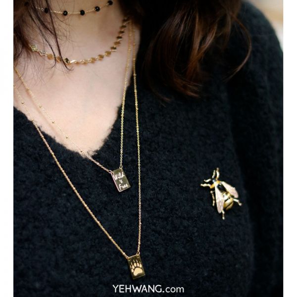Fijne (1,5 mm) ketting met bolletjes tussen de schakettjes met een langwerpig hangertje met aan de ene kant een afbeelding van een pootje en aan de andere kant de quote Wild & Free. De ketting is ook leuk om te layeren met andere kettinkjes, hij is wat langer, nl 65-70 cm. Van stainless steel zodat hij mooi blijft!