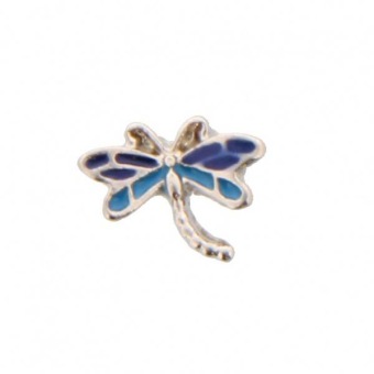 Klein bedeltje voor in de Memory Lockets in de vorm van een blauw met zilverkl. libelle (dragonfly)  afmeting 9 x 7 mm.
