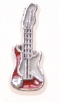 Klein bedeltje voor in de Memory Lockets in de vorm van een zilverkl. met rode gitaar , afmeting 5 x 14 mm.