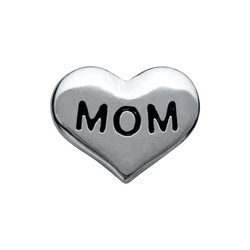 Bedeltje voor in de Memory Lockets in de vorm van een hart met Mom erop, zilverkleurig, grootte 6x5 mm