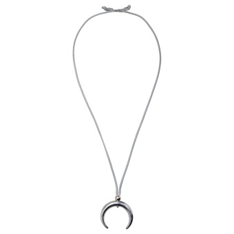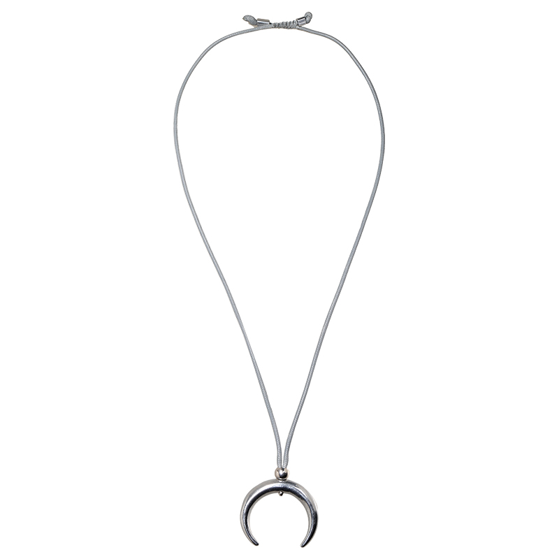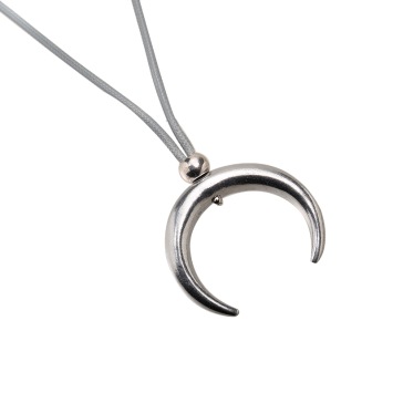 Deze lange ketting bestaat uit een dik (4 mm) lichtgrijs glanskoord met als hanger een serieus grote maan, oftewel Big Moon!