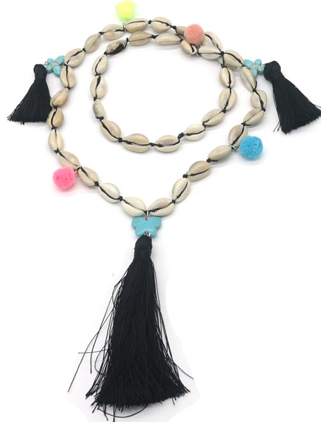 Alternatieve artikelen voor Ketting lang Boho schelpen & kwast zwart-multi