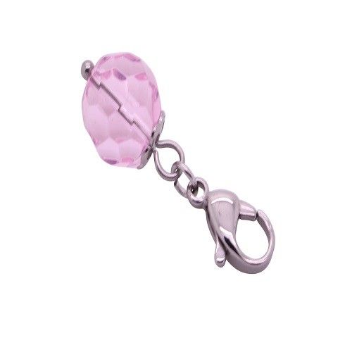 Kleine hanger met roze schitterkraal, door het slotje kun je de dangle aan je Pinkiezz muntketting hangen.