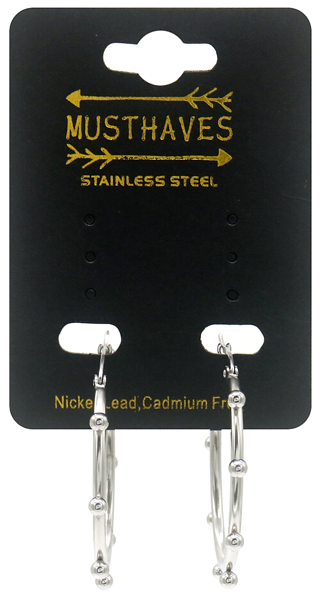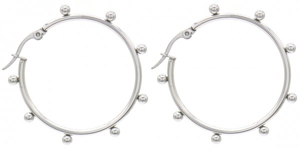 Deze hoops oftewel oorringen hebben bolletjes over de ringen verdeeld en zijn ongeveer 35 mm in doorsnee groot, van stainless steel zodat ze lang mooi blijven!