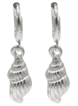 Grootte ring 10 mm, grootte schelp ong. 7 x 15 mm. Lengte totaal ong. 30 mm. De schelpen zijn ook van stainless steel (RVS).