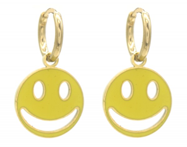 Deze oorbellen bestaan uit kleine hoops ofwel oorringen van 9 mm met daaraan een Smiley in geel emaille op goud, van stainless steel zodat ze lang mooi blijven. Van deze oorbellen moet je toch vanzelf glimlachen?