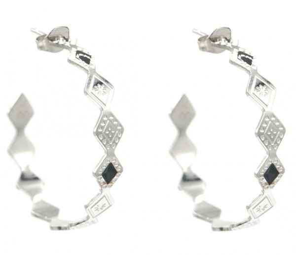 Deze hoops oftewel oorringen zijn open stekers met een ruitjes decoratie en zijn ongeveer 35 mm in doorsnee groot, van stainless steel zodat ze lang mooi blijven! De ruitjes hebben om en om een zwart gekleurd vlak.